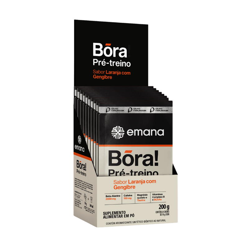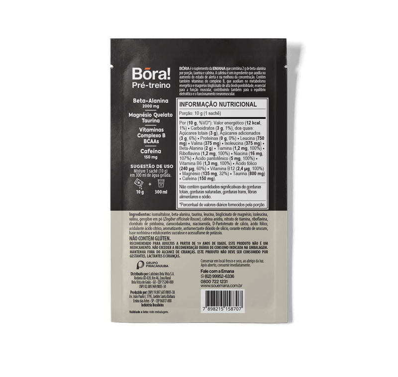 BÓRA é um pré-treino formulado com nutrientes ergogênicos. Contém beta-alanina, BCAAS e taurina, vitaminas do complexo B e magnésio bisglicinato.