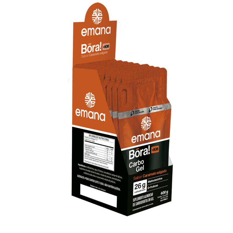 O que diferencia o +KM Caramelo Salgado dos demais géis da Emana é a adição de Beta-alanina, que ajuda a retardar a fadiga muscular, melhorando o desempenho durante a atividade